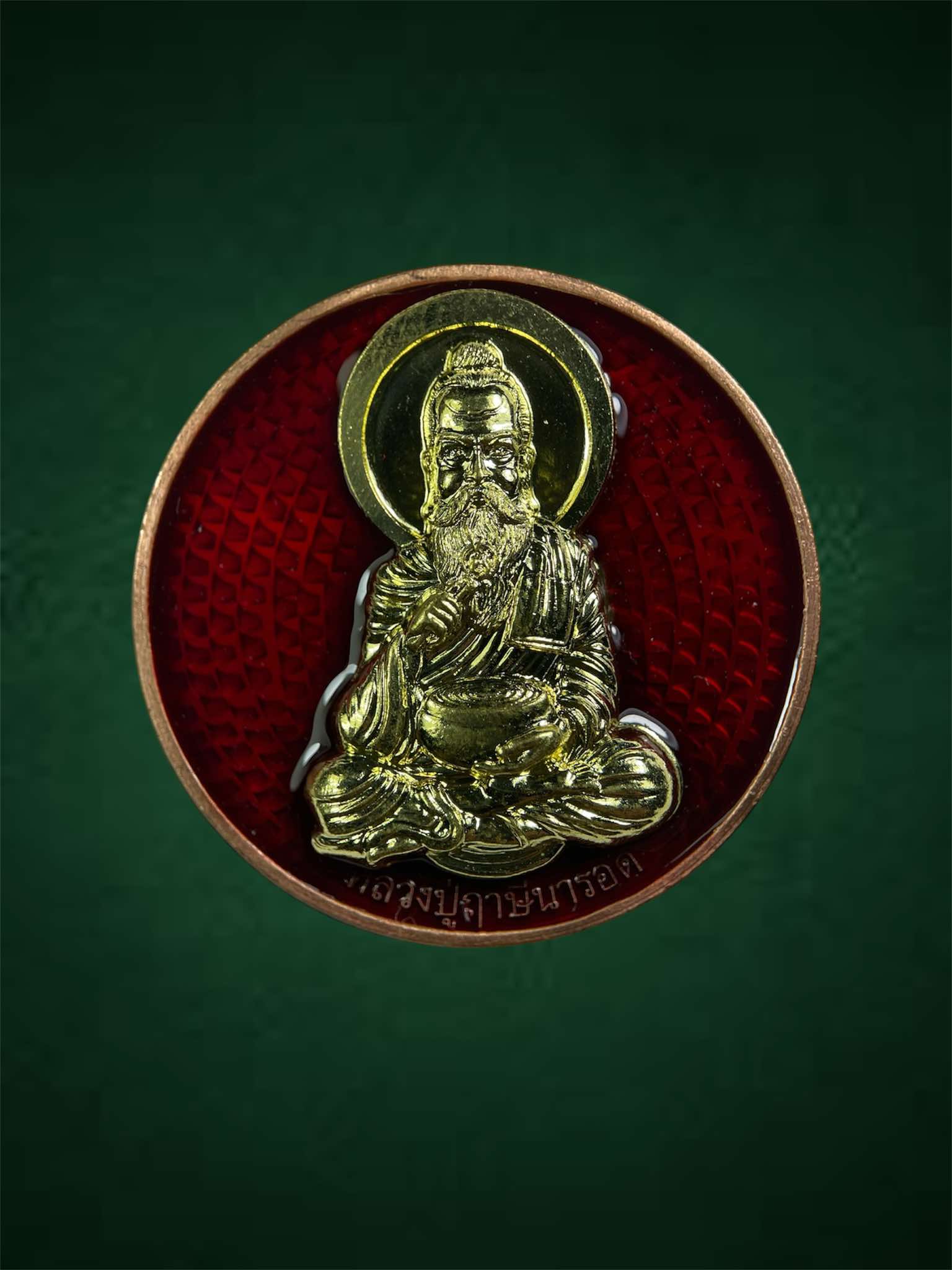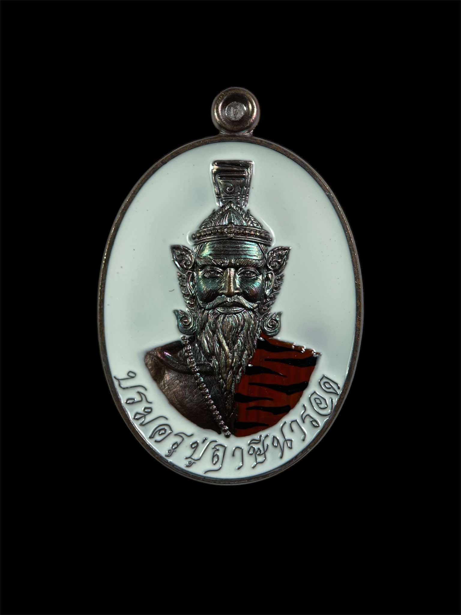 เหรียญ บรมครูพ่อปู่ฤาษีนารอด เนื้อ ทองแดงผิวรุุ้งลงยาขาว