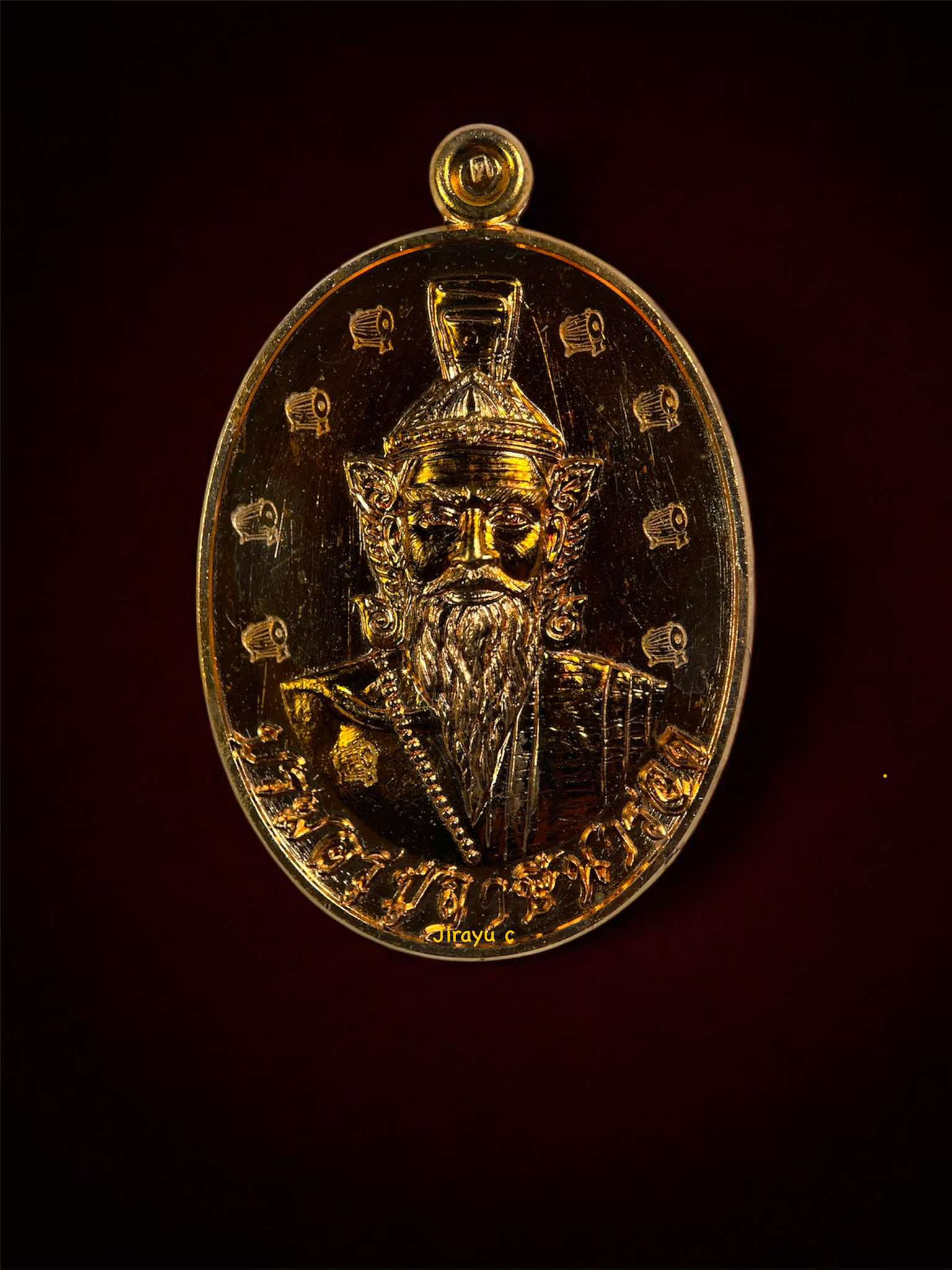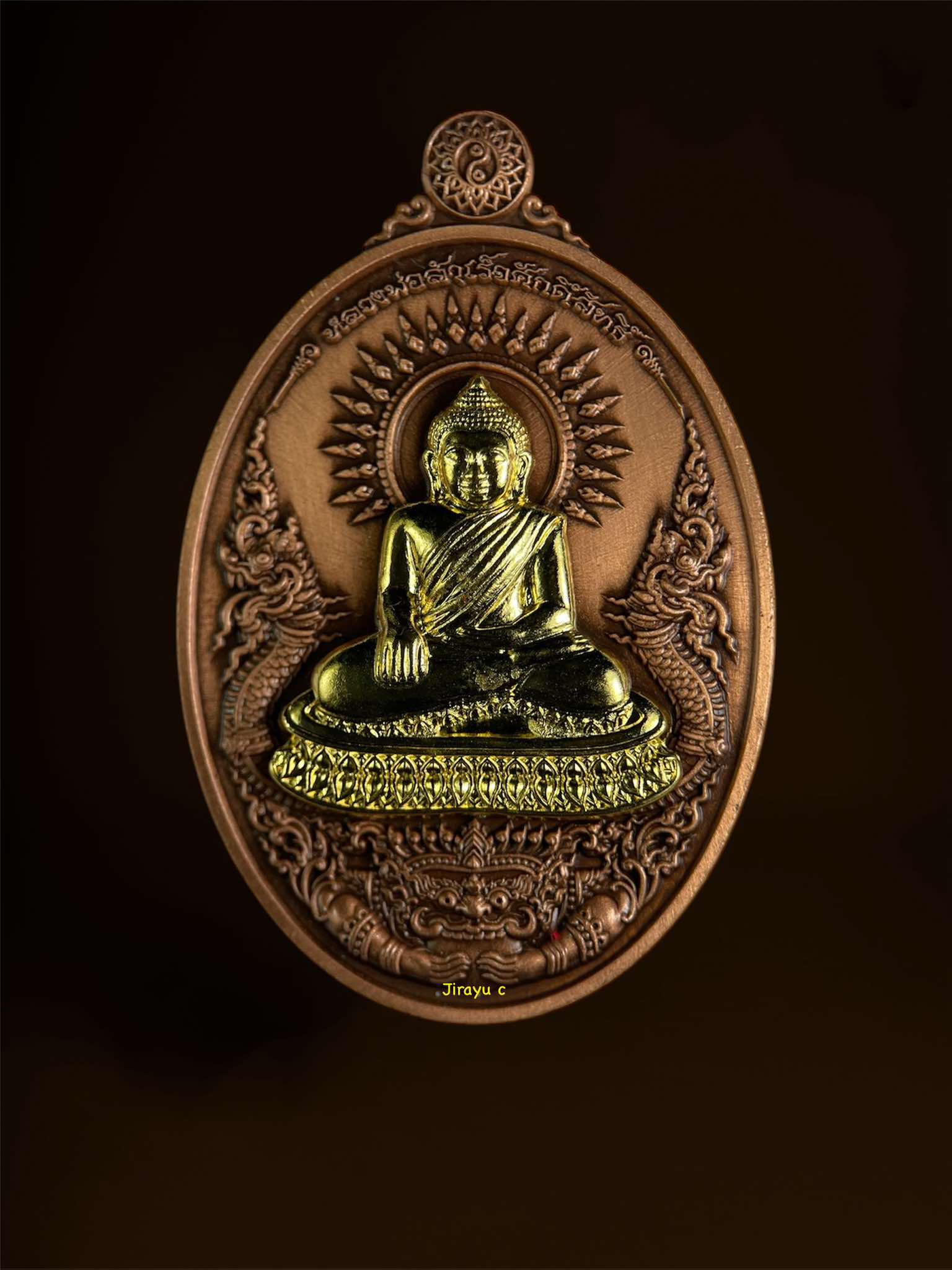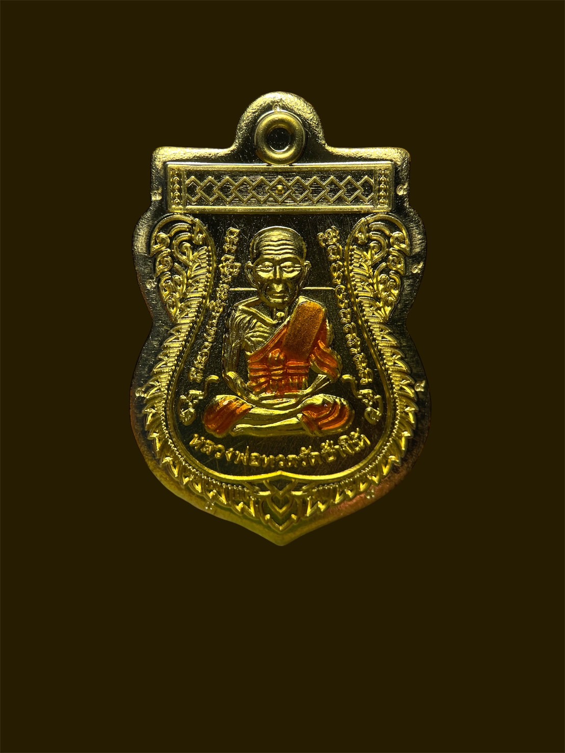 เหรียญ หลวงพ่อสำเร็จศักดิ์สิทธิ์ จตุพิธพรชัย ทองแดงซาติน (หน้ากากชุบทอง)