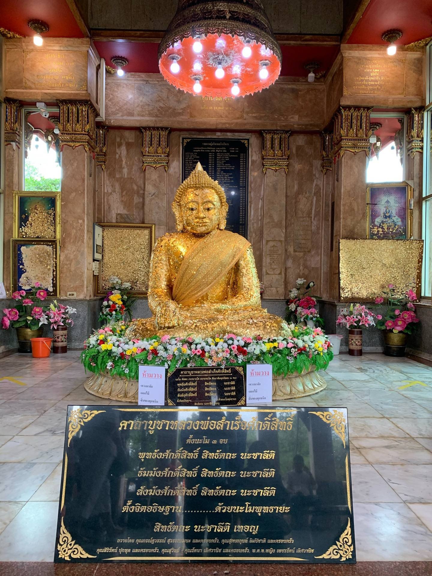 เหรียญ หลวงพ่อสำเร็จศักดิ์สิทธิ์ จตุพิธพรชัย ทองขาวซาติน (หน้ากากชุบทอง)